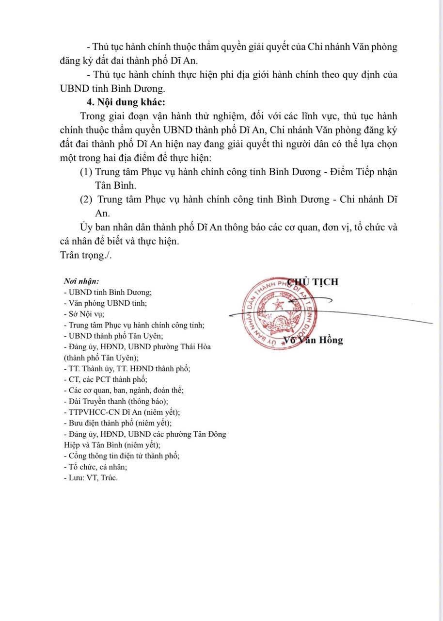 * Chi nhánh Văn phòng Đăng ký đất đai TP. Dĩ An.